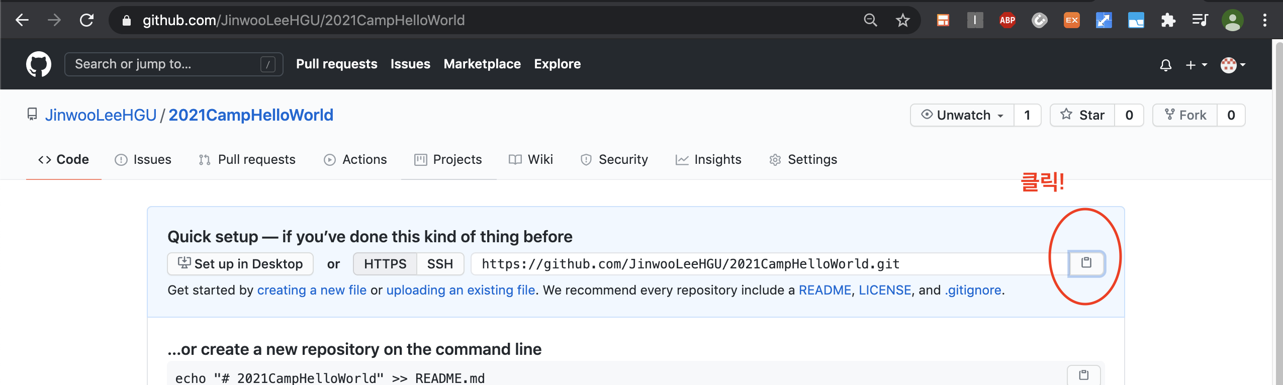 1. 깃헙에 repo 새로 생성하기 (설정은 아무것도 하지 말고!!)