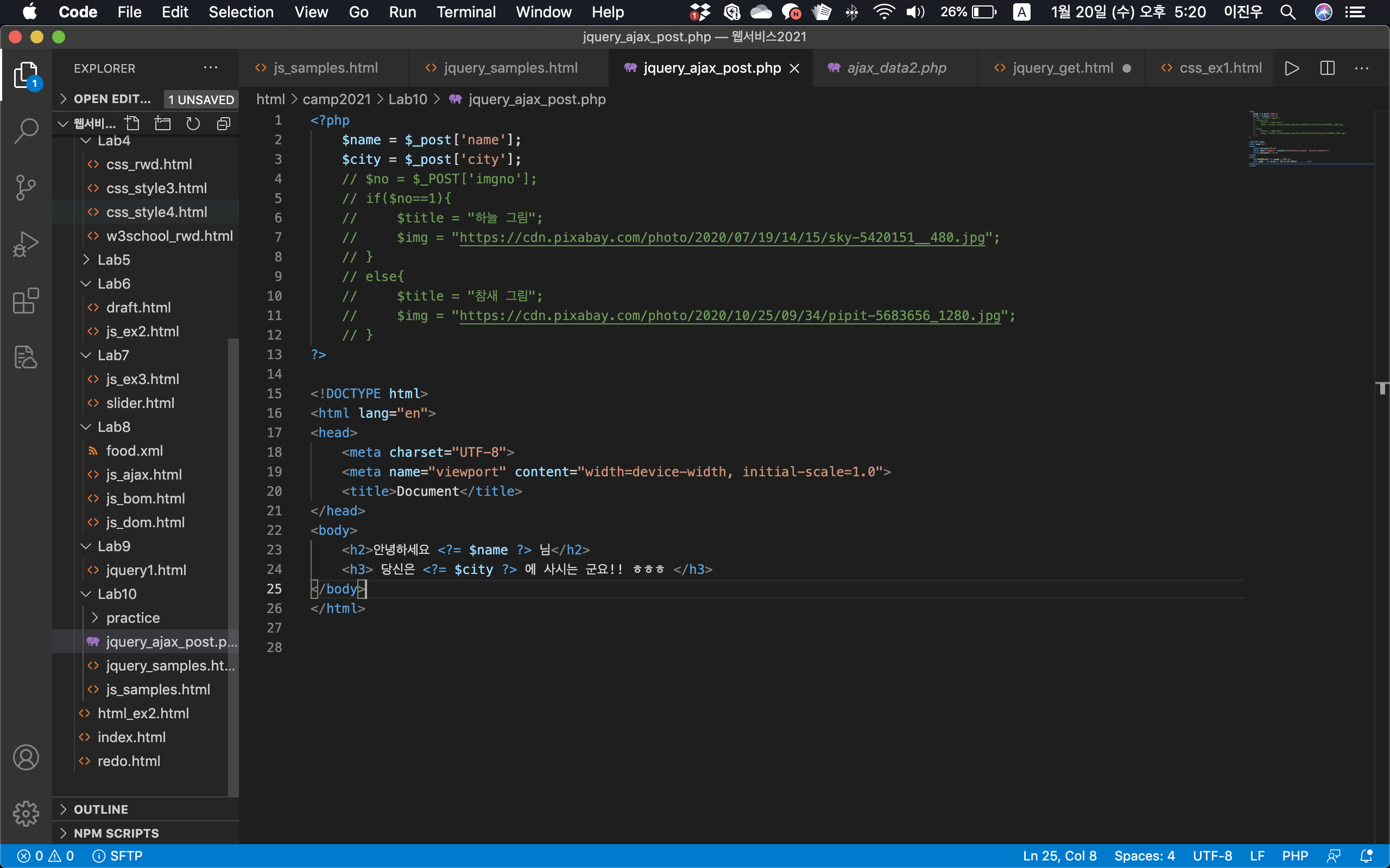 | 웹캠프8일차: JS Browser BOM + JS AJAX (2) (0) | 2021.01.18 |